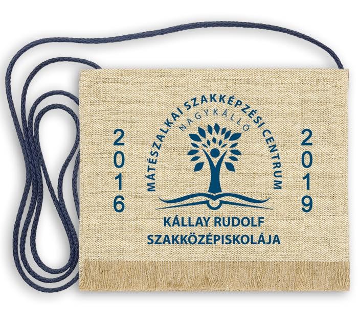 Vászon tarisznya festett iskolai logóval, névre és évszámra szabva.